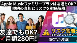サービスApple Musicファミリープランは友達同士でもOK?規約の「同じ世帯」の真相と住所確認のリスクを徹底解説 Apple Musicを利用している方なら一度は検討するのが「ファミリープラン」ではないでしょうか。 個人プランが月額1,080円なのに対し、ファミリープランは月額1,680円で最大6人まで利用可能。もし6人で割れば、1人あたりわず... 2026.02.17サービス