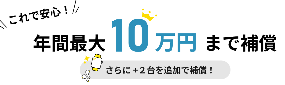 iPhoneは10万円、AirPods・タブレットは各3万円まで補償されます。