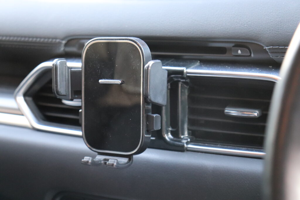 • エアコン吹き出し口式: CX-5の五角形の吹き出し口には爪が掛かりにくい。何より、冬場に温風をスマホに直撃させて「高温注意」でスマホが止まる。