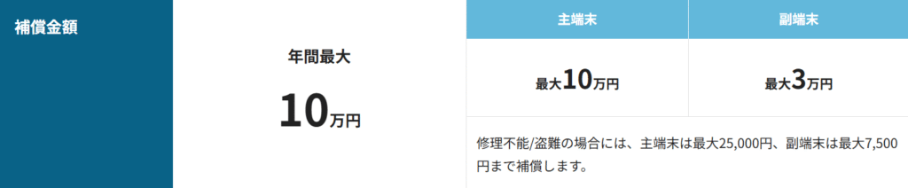 - 年間補償上限:主端末10万円 副端末3万円(2台の合計)