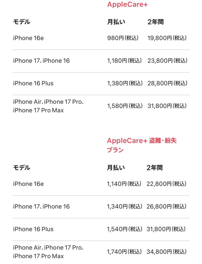 - 料金が高い(iPhone17の場合年間約3万円)