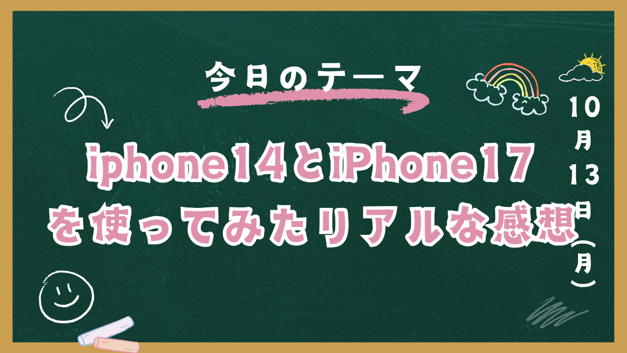 「まだiPhone14でも十分使えるんじゃないかな?」って思いつつも、新しいiPhoneが出るとやっぱり気になっちゃいますよね。私は約1年半の間iPhone14を使ってきたんですが、バッテリーの持ちや画面の明るさ(外で見づらい)にちょっと不満が出てきたので、思い切ってiPhone17に機種変更しました。この記事では、実際に14から17に乗り換えてみて感じた違いをお伝えしていきますね。